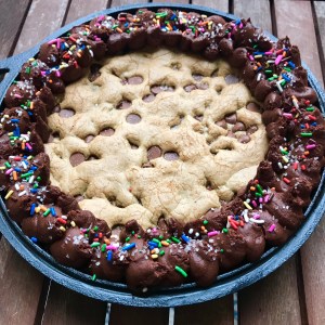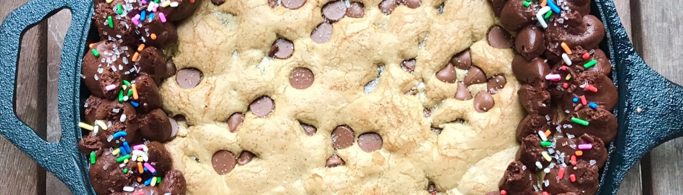 What is your go to treat to bake for loved ones on their birthdays? This one is my FAVORITE! Who doesn’t love a monster chocolate chip cookie cake with buttercream icing and sprinkles? It’s super easy to make and will impress everyone.